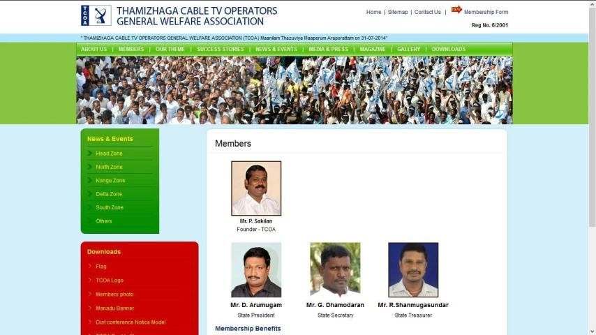 T.C.O.A. Consists of member companies operating cable TV systems that serve nearly 10 million cable households -- 90 percent of Tamil Nadu's cable subscribers. The Association continues to keeps its members informed through meetings, newsletters and reports on important issues affecting the cable television industry. T.C.O.A. staff members also participate in regional visits to cable systems to meet with T.C.O.A. members and to stay apprised of issues of concern. we proudly say that all the tax amount fixed by the government was levied by T.C.O.A.