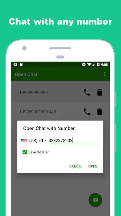 बस एक कदम से आप किसी भी फोन नंबर का व्हाट्सएप चैट खोल सकते हैं जिसमें व्हाट्सएप है। मुफ्त में डाउनलोड करें और संदेश खोलने के लिए कोई संपर्क नहीं है। सबसे अच्छी मदद और चाल में से एक है जो आपको कई अलग-अलग उदाहरणों में ऊधम और निराशा से बचा सकती है।