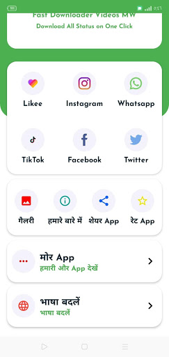 फास्ट डाउनलोडर वीडियो एक Android सभी सामाजिक मीडिया वीडियो और छवि डाउनलोडर ऐप है। आप लाइक, व्हाट्सएप, डब्ल्यूए बिजनेस, टिकटॉक, ट्विटर, और इंस्टाग्राम वीडियो और इमेजेज, रील इन ऑल इन वन स्टेटस सेवर को सेव कर सकते हैं। आप वॉटरमार्क के बिना लाइक और टिकटॉक वीडियो डाउनलोड कर सकते हैं। आप उन्हें ऐप से आसानी से साझा कर सकते हैं। ऐप डाउनलोड करें और सभी सुविधाएँ देखें।
