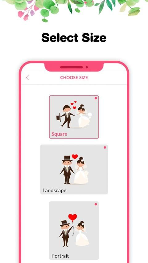 - मैन्युअल रूप से कार्ड डिस्प्ले को स्क्वायर, पोर्ट्रेट या लैंडस्केप में से चुनें और एक आश्चर्यजनक शादी या सालगिरह कार्ड बनाने के लिए संपादन सुविधाओं का उपयोग करें।