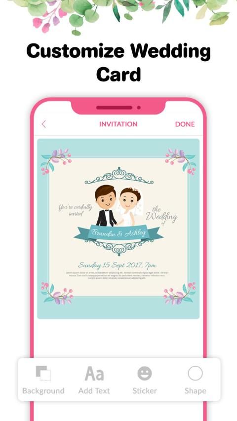 - Set a soothing background for your wedding or invitation card with the aid of background feature.