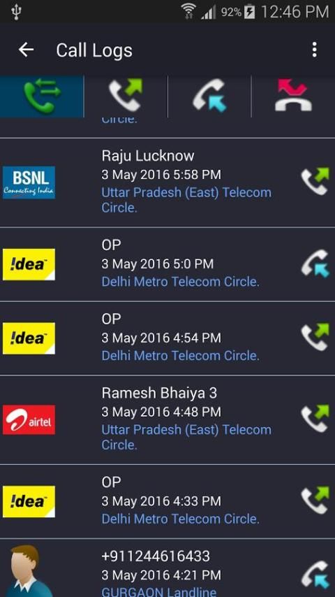 स्मार्ट कॉल लॉग्स: कॉल का स्थान, सिम सेवा सेवा प्रदाता नाम आदि की तरह हर कॉल के ठीक विस्तार के साथ कॉल लॉग्स