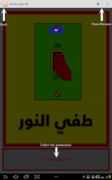 This app uses the device’s light sensor to display a picture and a song that tell you to turn the lights off when the room lights are on. When you switch off the lights, the light sensor detects this action and a funny picture that says “Who switch off the light?” is displayed. If you switch on the lights, the first picture is displayed again.