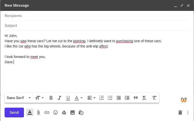 हमारे वास्तविक समय में सुधार आपको व्याकरण और वर्तनी की गलतियों से सुरक्षित रखेगा।