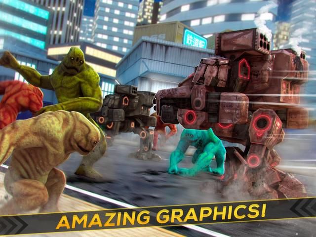 राक्षस हमला है कि शहर पर हमला है से बचने के लिए हमारे रोबोट की मदद।