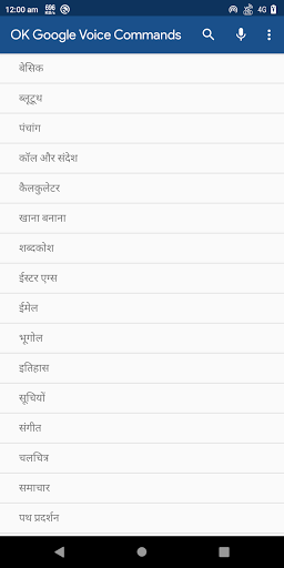 कमांड श्रेणियाँ हैं: ऑफ़लाइन कमांड, मूल बातें, खोज, नेविगेशन, मनोरंजन और बहुत कुछ।