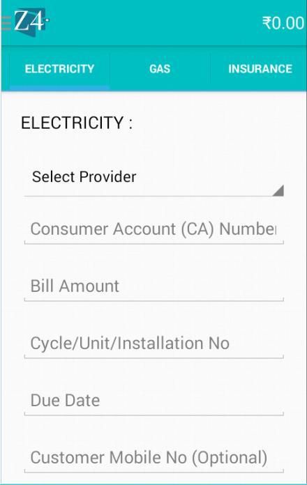 zee4wallet बी 2 सी रिचार्ज प्रीपेड, डीटीएच, datacard, पोस्टपेड, लैंडलाइन और की तरह सभी उपयोगिता बिल भुगतान की तरह रीचार्ज की सुविधा प्रदान करते हैं। बिजली, गैस, बीमा आदि