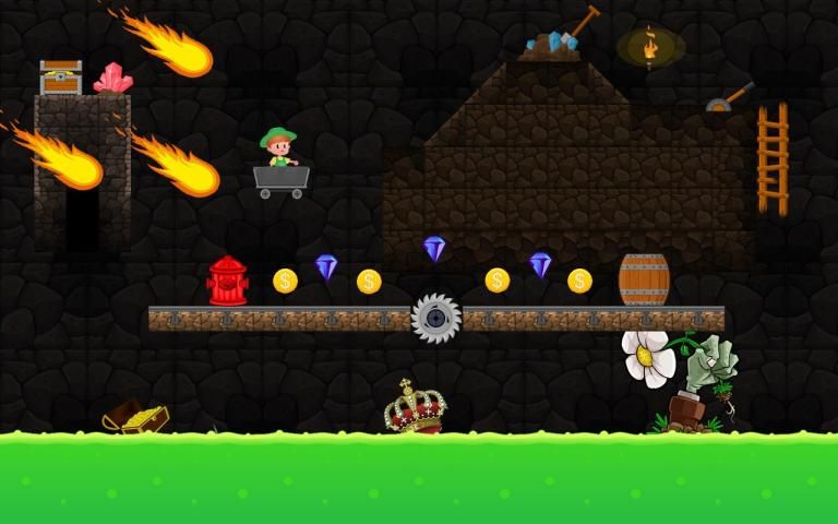 Find new and exciting paths to explore across the mine, and go through those special levels to earn more nuggets! Featuring many exciting environments in 10 different settings: dash through the Crazy Caves, fight the horde in the Zombie Caves, make your sweetest dreams come true in Sweet Wonderland, hurtle through the lush and dangerous Amazon jungle, immerse in the terrific Undersea World, take a dive in the Horror Land, visit the wonderful Snow Land, navigate on the Steam Factory, find your way on the Jurassic Jungle and explore the Pharaoh's Tomb, all this and many surprise levels which will amaze you with their colorful scenarios.