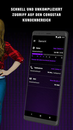 Congstar ऐप आपको निम्नलिखित फ़ंक्शन प्रदान करता है: