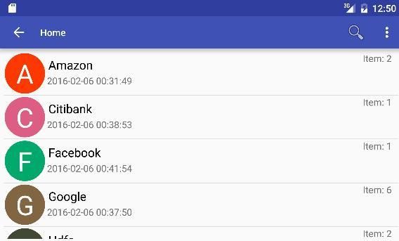 On item click you will get details that has stored by you group name, title, URL, user name, password, hint, last update date or insert date and description. On click delete button you can delete this Item. On click edit button you can edit the details that stored by you. After editing click on update button to update data.