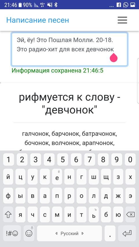 Приложение показывает рифмы во время записи.