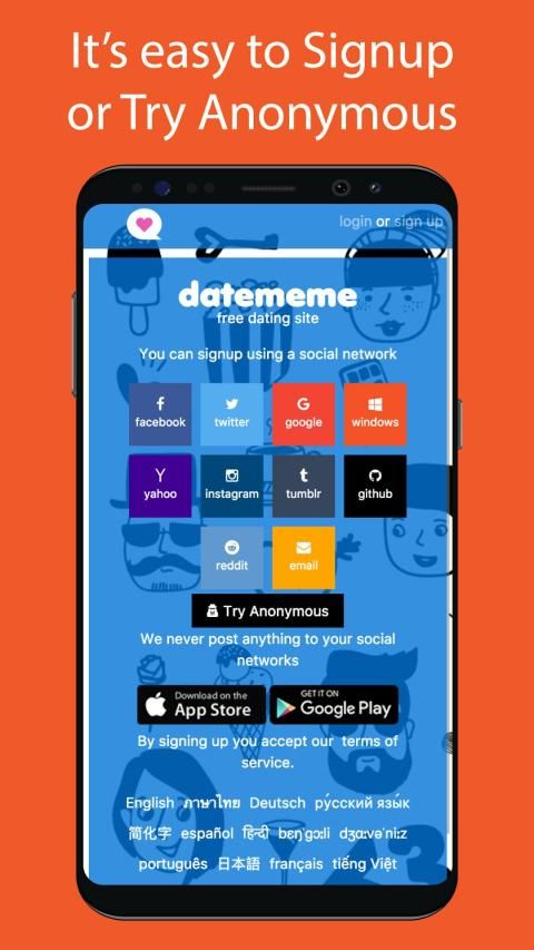 datememe एक नई दुनिया भर में 100% नि: शुल्क प्रीमियम ऑनलाइन डेटिंग सेवा है। datememe के साथ यह सेकंड लेता साइन अप करने और अपने पहले मैच प्राप्त करने के लिए।