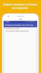 1.3) Выберите сертификат на Рутокене для соединения из списка;