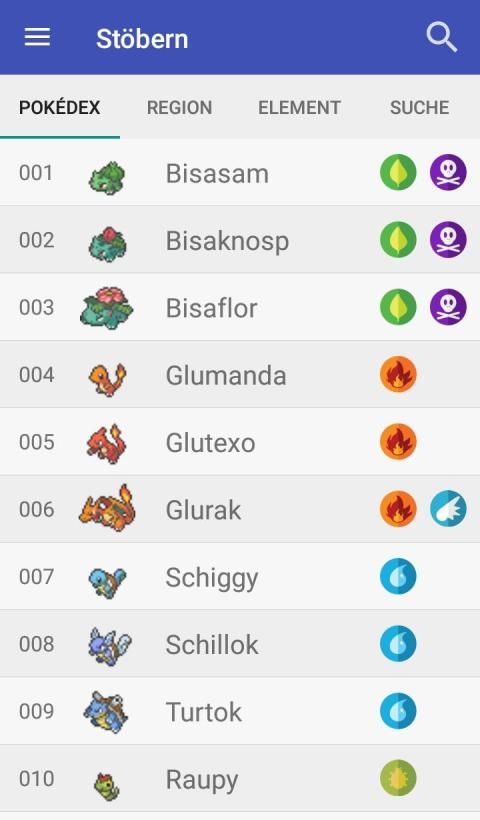 Diese Anwendung stellt dir ein hilfreiches Werkzeug zur Seite um deine anstehenden (oder bereits gestarteten) Pokémon-Abenteuer zu meistern. Hierzu gehört das schnelle Auffinden von Pokédex-Einträgen, Tipps zu Vor- und Nachteilen der Pokémon-Elemente, sowie die Hauptfunktion: die Planung deines Pokémon Teams.