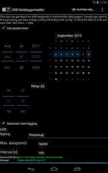 This program is the Test-Version of "USB Dataloggerreader". It is an interface to temperature, humidity, pressure, voltage, current, sound level and/ro CO cocentration USB-dataloggers. (Works only on tablets and smartphones which have a USB (Host) plug.)