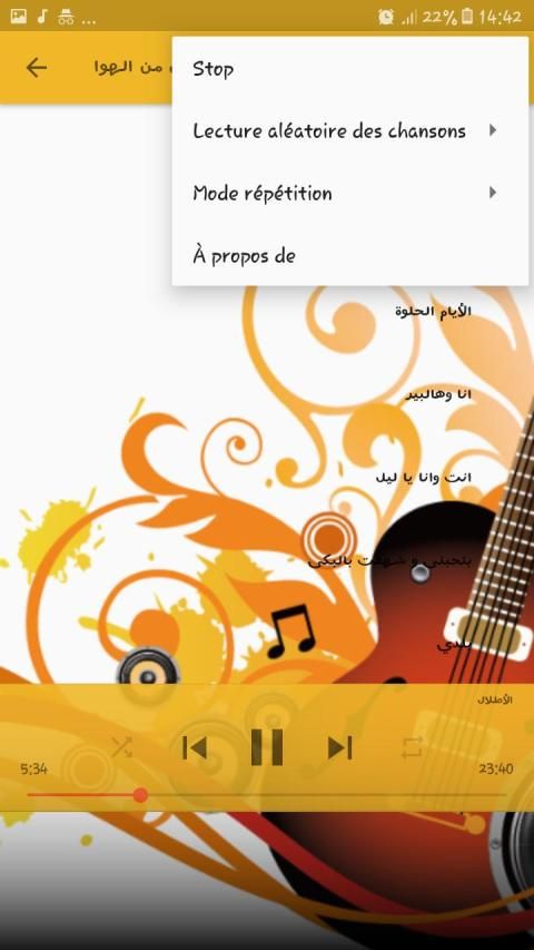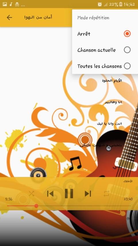 بعد الأغاني التي يحتوي عليها التطبيق