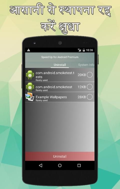 साथ "एंड्रॉयड प्रीमियम के लिए तेजी लाने" एक बटन की धक्का मिल मुक्त कैश स्मृति, जो आपके फोन में ज्यादा तेजी से और बेहतर तुरन्त रन बनाना होगा।