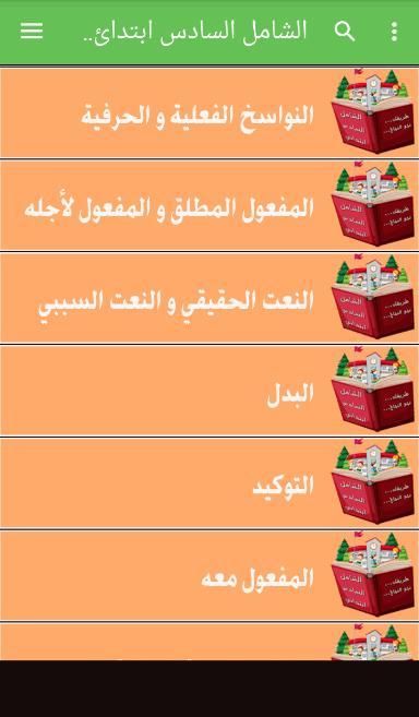 इस एप्लिकेशन में जो इंटरनेट के बिना काम करता है और इंटरफ़ेस और उसके छोटे आकार का उपयोग करने के लिए एक सरल और आसान द्वारा प्रतिष्ठित है जो किसी भी फोन पर प्रेषित किया जा सकता है, भले ही आप आसानी से और आसानी से छठे स्तर के सबक सीखने में सक्षम होने के लिए आपको जो कुछ भी चाहिए वह सब कुछ मिल जाएगा। अपनी उंगलियों पर एक क्लिक करें।