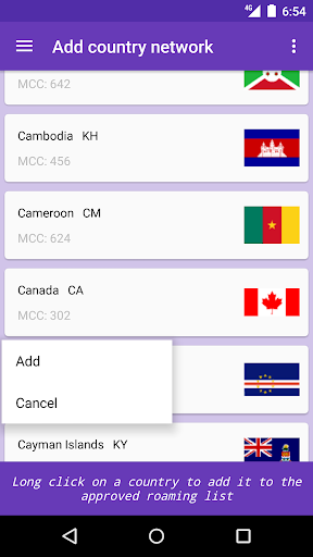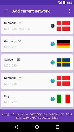 Due to permission changes on the android platform it is not possible to turn data connection on and off automatically. Therefore the user will be informed via notifications when roaming happens on an not approved network. The user will then have to turn off the roaming connection manually.