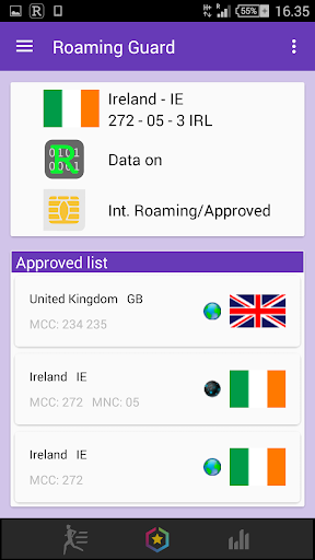 Roaming Guard keeps track of when the phone is roaming. This is very useful since the user does not have to worry about roaming. Just setup the Roaming Guard once and then leave the app running in the background and don't worry about data costs. The typical user is the one that crosses the border often while commuting to work.