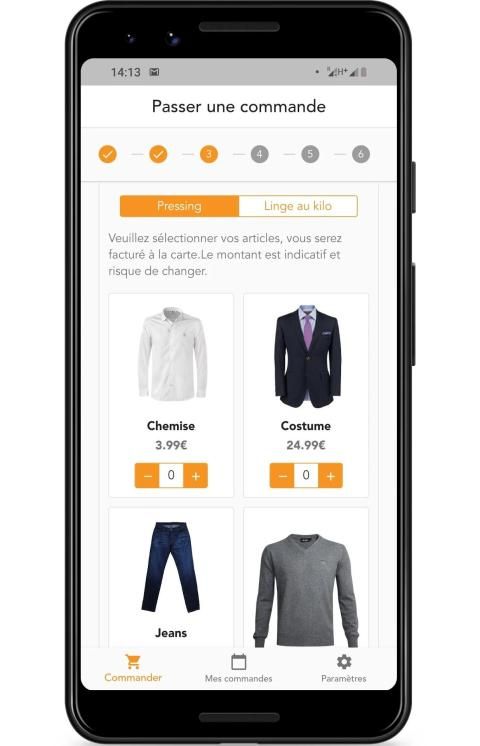 Commandez en un clic via l'application Pressy. Votre linge est collecté à domicile puis vous est rendu lavé, repassé et plié en 24H !