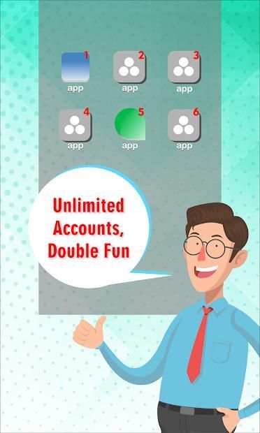 with dual app cloner you can login to multiple parallel space accounts. double fun, double experience. with dual app cloner you can also clone your clone account whats, messenger, and all social media accounts.