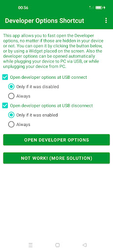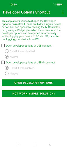 यह ऐप आपको डेवलपर विकल्पों को तेजी से खोलने की अनुमति देता है।डेवलपर विकल्प खोलने के लिए मानक चरण सेटिंग्स & gt हैं;डेवलपर विकल्प।