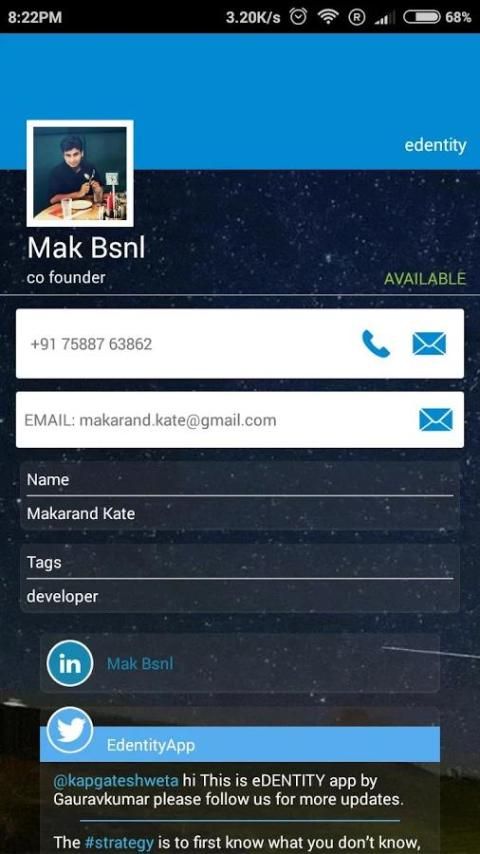 • eDENTITY मदद से आप जानते हैं और पहले कभी नहीं की तरह अपने संपर्कों के साथ कनेक्ट। पहचान की निर्देशिका में अपने गूंगा संपर्क सूची में कनवर्ट करें। संपर्क विवरण के पीछे असली लोगों को पता है। यहाँ एक नल के कई अलग अलग प्लेटफार्मों पर जुड़ जाएगा, यह फेसबुक, लिंक्डइन और Instagram या फोन, संदेश हो सकता है और बैठक में सभी एक ही स्थान, चिकनी और अपनी उंगलियों पर सरल कर रहे हैं।