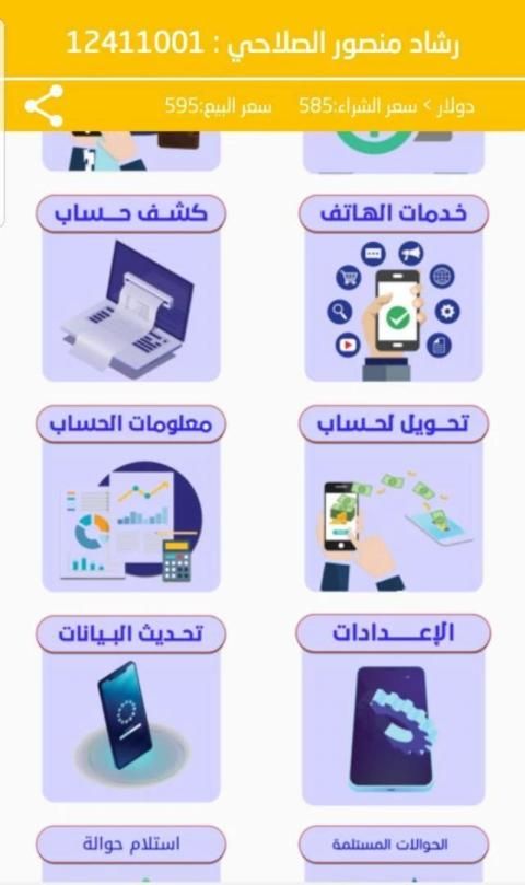 2 - सभी यमनी कंपनियों के लिए संतुलन और पुनर्भरण सेवाएं (सबाफ़ोन - यमन मोबाइल - एमटीएन - फिक्स्ड टेलीफोन - वाईआई - मोबाइल)