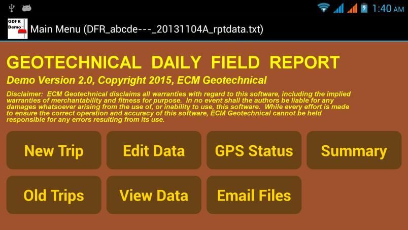 Geotechnical Daily Field Report (GDFR) is an Android app designed for geotechnical engineers and geotechnical engineering technicians to generate daily field reports in the field using an Android phone.