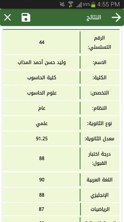 كما يمكن الإستعلام عن نتيجة اختبار القبول من التطبيق