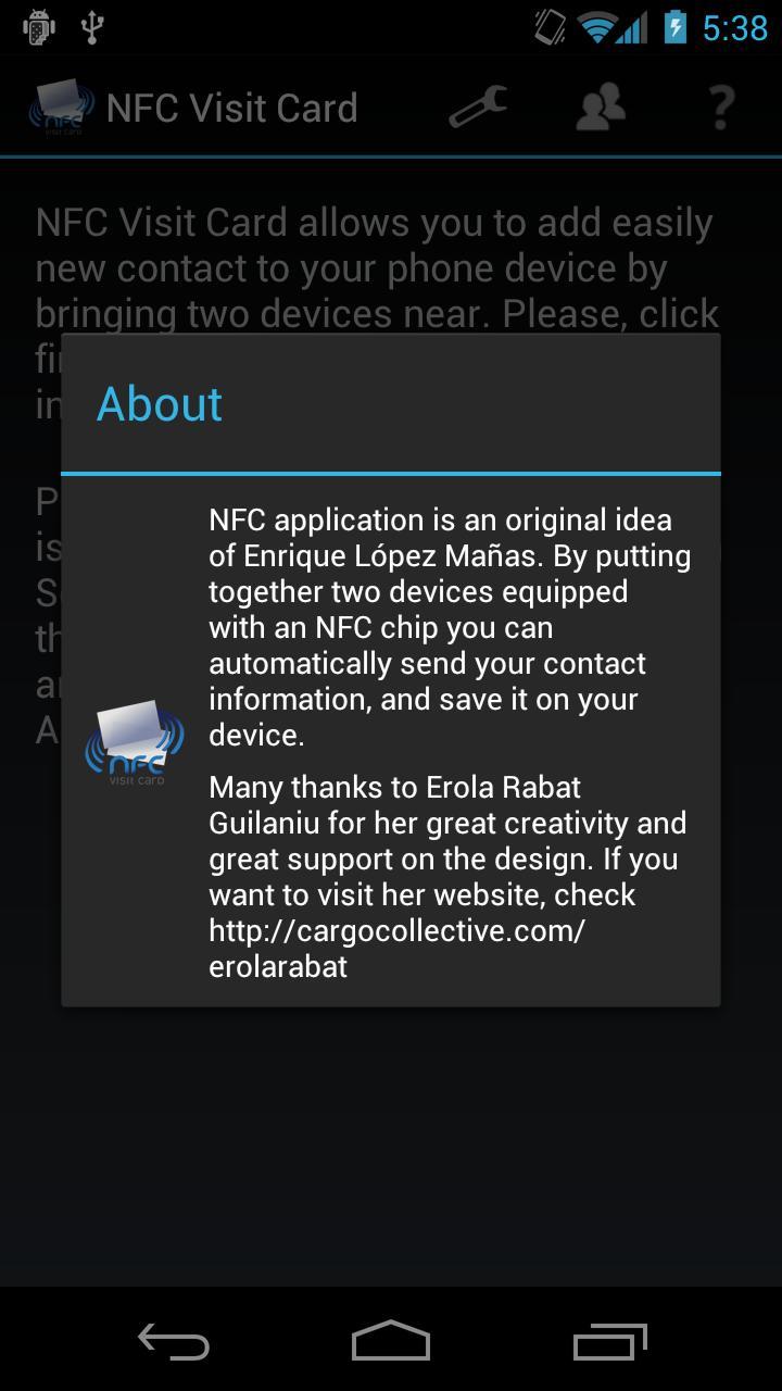 Do you have a device with NFC? Then NFC Visit Card has been designed for you!