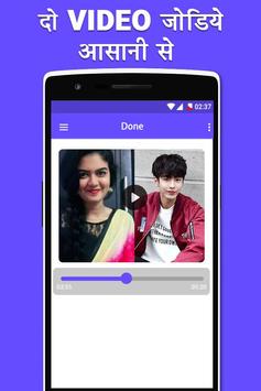 Video को जोड़ने वाला ऐप अब हैं बिलकुल आसान. इस एप्प से आप दो या चार वीडियो को साइड से जोड़ सकते हैं. आप छोटे छोटे अलग वीडियोस को जोड़के एक नया लम्बा वीडियो भी बना सकते हैं. बस अपने वीडियोस सेलेक्ट करे और एक क्लिक में जोड़े. आप अपने वीडियोस का गाना या साउंड भी बदल सकते हैं. बस वीडियो को सेलेक्ट करे, नया गाना सेलेक्ट करे और वीडियो पर चिपका दे | १०० % आसान. आप चाहें तो किसी भी गाने का कोई भी भाग काटके भी वीडियो पर चिपका सकते हैं.