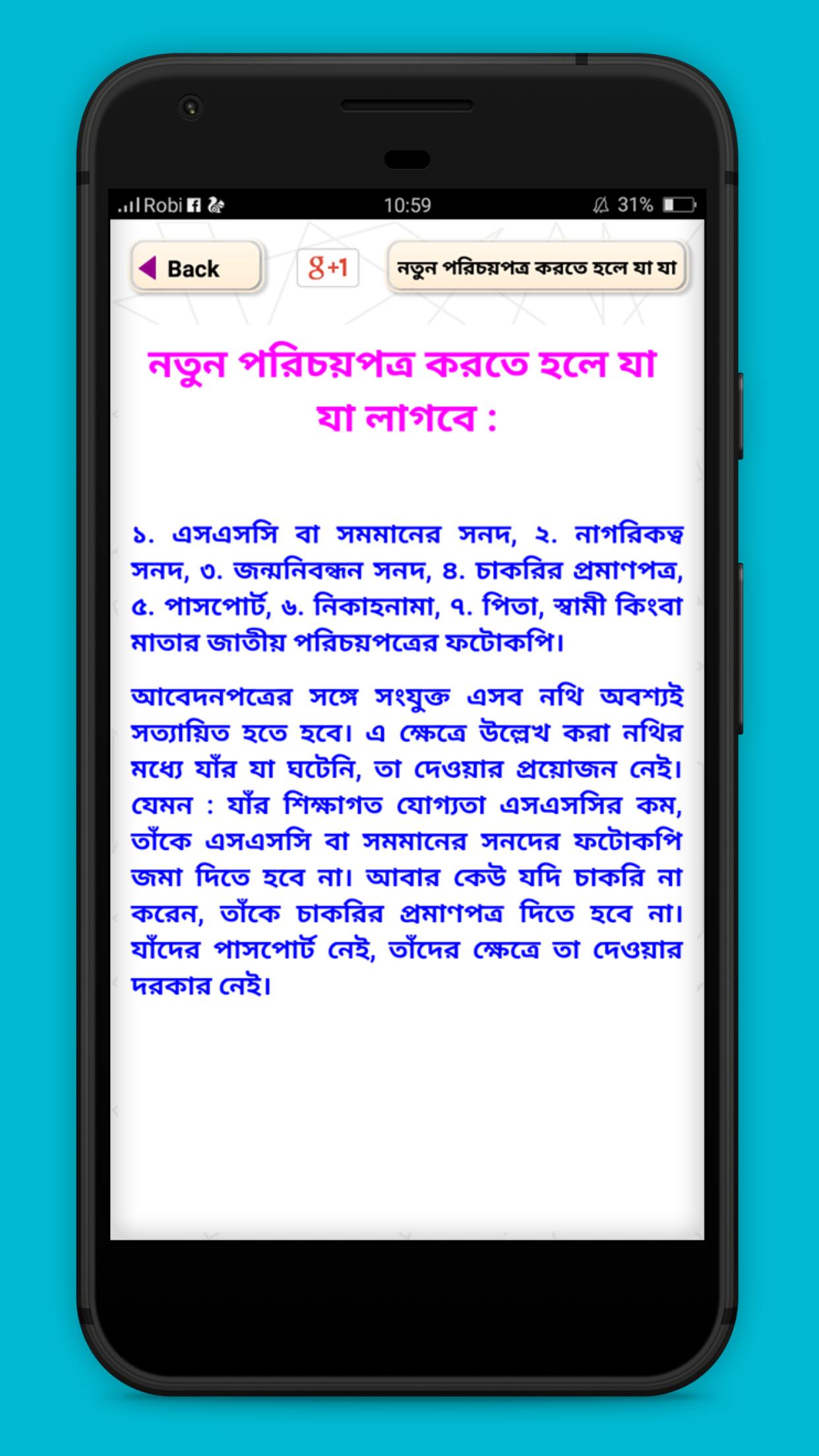 জাতীয় পরিচয়পত্র (NID) হারিয়ে গেলে করনীয়, জাতীয় পরিচয় ও স্মার্টকার্ড সংশোধন, SMART NID CARD করবেন যেভাবে - স্মার্ট ভোটার কার্ড, পাসপোর্ট করার সহজ উপায় how to apply passport, NID CARD কার্ডের সফটকপি সংরক্ষন, নিজে করুন ভোটার IDসহ ৪টি কার্ড, ৫ মিনিটে নিজেই করুন আইডি কার্ড। আশা করব অ্যাপটি দ্বারা সবাই খুব উপকৃত হবেন ও সঠিক সময়ে জাতীয় পরিচয় পত্র করে নিবেন ও রাষ্ট্রীয় সকল সুবিধাসমূহ উপভোগ করবেন।