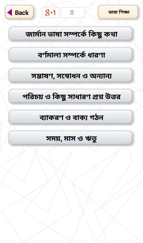 German language learning app is our new app of learning German language. To learn German Language in Bangla this app should be the best choice for you. It's like a app about Bangla to German language translator and all the information are enlisted here very easily for German language learner. Hope to be facilitated by this application.