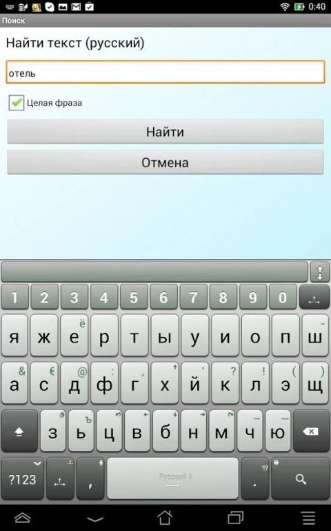 आवेदन कार्यक्रम विदेश यात्राओं के दौरान इलेक्ट्रॉनिक बात कर अनुवादक द्वारा एक महान भूमिका प्रदर्शन करती है. यह करने के लिए धन्यवाद आप आसानी से सभी विशिष्ट स्थितियों में संवाद कर सकते हैं - हवाई अड्डे पर एक दुकान में, एक बैंक, एक होटल, ... कोई बात नहीं, एक रेस्तरां में आदेश करने के लिए, बॉक्स ऑफिस पर एक टिकट खरीदने के लिए, एक बैठक के लिए निर्देश या करार के लिए पूछना.