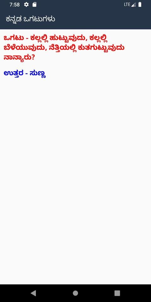 This app will give you information about riddles in kannada. Many of you love reading this app, learning about the facts, asking the same question with your friends and family. Finally you will enjoy this app.