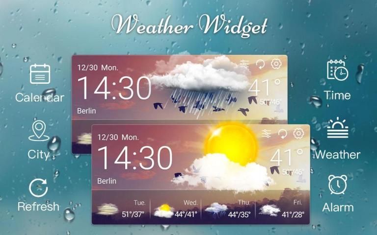 वास्तविक समय मौसम, 5 दिनों के मौसम पूर्वानुमान, घड़ी और कैलेंडर ...