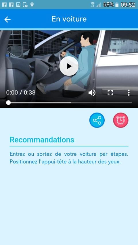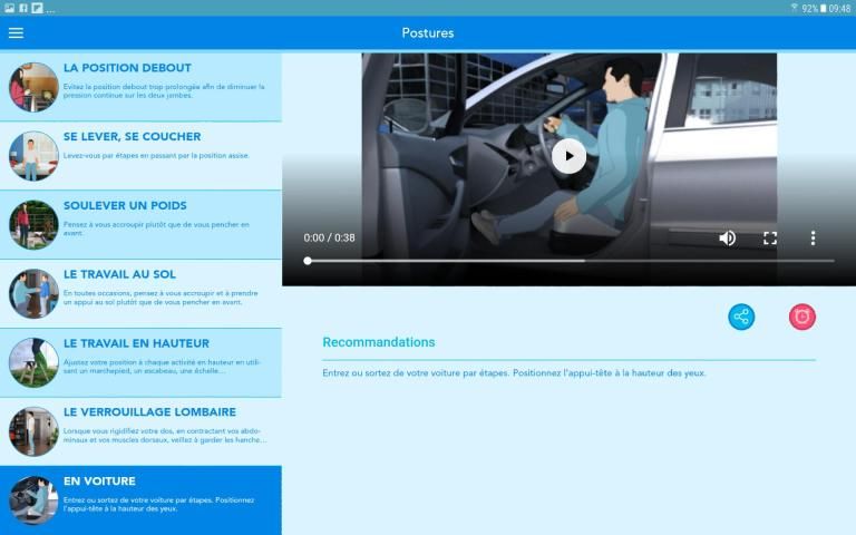 Visionnez des vidéos de bonnes postures pour le bureau, le jardin, la voiture… Des conseils pour adopter les bonnes postures et éviter les mauvaises postures. En fonction de vos besoins au quotidien, vous pouvez programmer des rappels de bonne posture pour ne plus oublier comment bien se tenir.