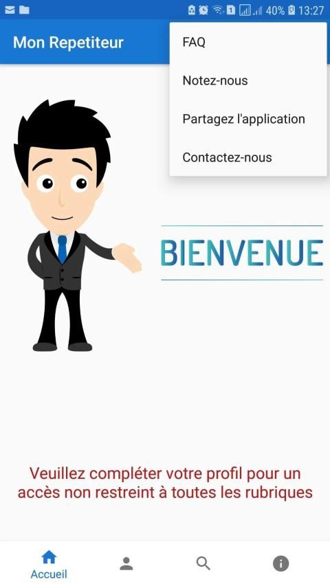 MON REPETITEUR एक स्कूल प्लेटफ़ॉर्म है जिसका उद्देश्य विद्यार्थियों और छात्रों को एक पर्याप्त समाधान प्रदान करना है जो स्कूल पर्यवेक्षण की कमी की समस्या को हल करता है जिसका सामना आज हम अपने अलग-अलग शिक्षा प्रणालियों टोगो और अफ्रीका में करते हैं। बेहतर उत्पादकता के लिए युवा शिक्षार्थियों की क्षमता और योग्यता को बढ़ावा देने के लिए गुणवत्ता वाले घर स्कूल शिक्षा सेवाओं की पेशकश कर सकते हैं जो संसाधन व्यक्तियों प्रदान करके।