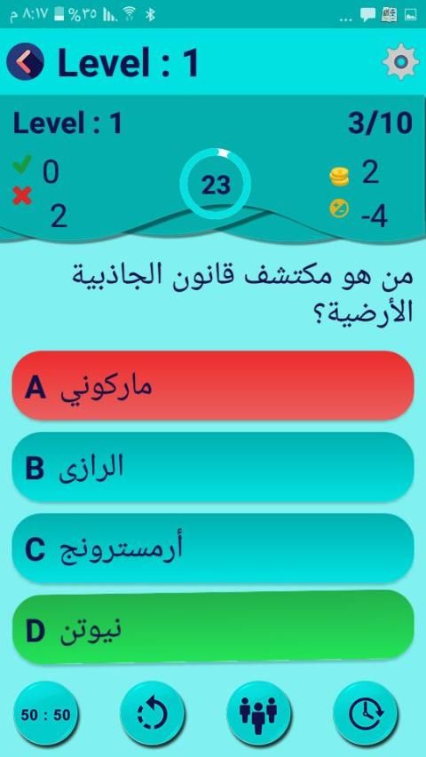 تطبيق اختبر معلوماتك يشبه الى حد كبير برنامج المسابقات الشهير (من سيربح المليون) بالنسخة الأصلية للبرنامج ...