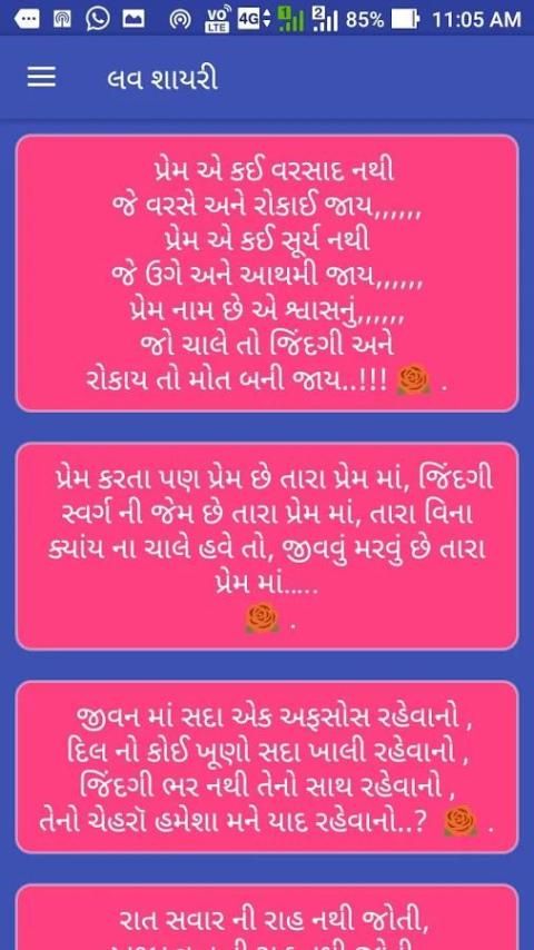 इस आवेदन गुजराती शायरी के बहुत सारे है और शायरी श्रेणियों हिंद। कौन सा नीचे सूचीबद्ध हैं।