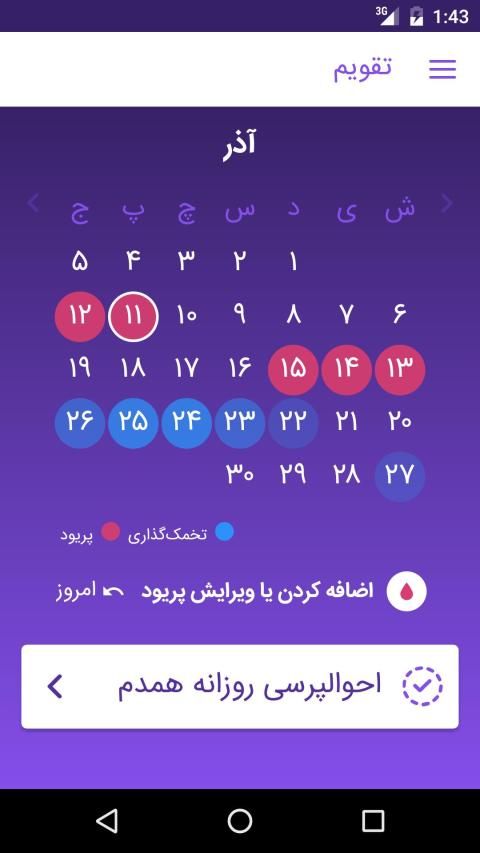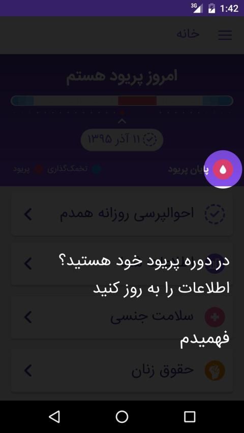 पहली प्रयोगशाला उत्पादन "Ayrankvbatvr" का साथी, स्वास्थ्य और एनजीओ कार्यकर्ताओं "स्पेक्ट्रम" Machvlnd संस्थापक में लैंगिक समानता की विषय सामग्री के अधिकार क्षेत्र में विवाहित महिलाओं के अधिकारों के क्षेत्र में सहायता के लिए आवेदन, बना दिया गया है। जलाली कैलेंडर के पहले फारसी भाषा के साथी app है कि मासिक धर्म चक्र और यौन स्वास्थ्य और प्रजनन क्षमता में और भी हमारी शादी और घरेलू हिंसा के उपयोगकर्ताओं के लिए उपलब्ध सूचना के क्षेत्र में महिलाओं।
