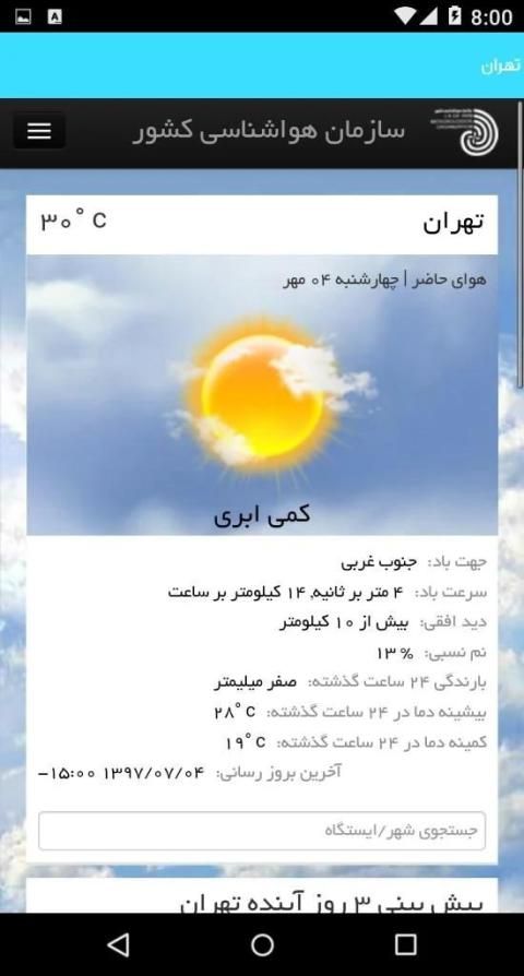 با اپلیکیشن هواشناسی به صورت کامل و دقیق به تمامی اطلاعات آب و هوای همه استانها و شهرها در لحظه دسترسی خواهی داشت.
