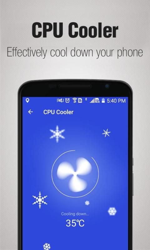 -CPU कूलर अंतरिक्ष क्लीनर की एक महत्वपूर्ण विशेषता है, इस सुविधा overheating क्षुधा को रोकने के द्वारा अपने फोन को और कम CPU उपयोग के तापमान नीचे शांत करने में मदद करता है और अपनी बैटरी अब पिछले करने के लिए!