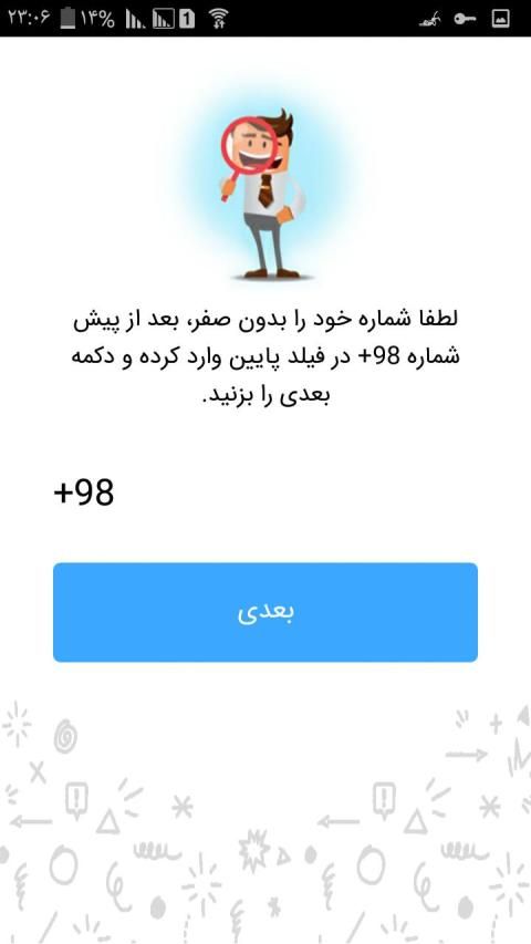 فقط کافیه شماره خودتون رو بدون صفر بعد از +98 وارد کنید که در راهنمای برنامه نیز توضیح داده شده . سپس تایید رو بزنی و کد دریافتی رو وارد کنی . به همین راحتی .