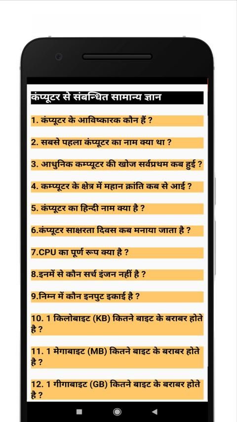 Computer GK in Hindi App - सामान्य ज्ञान प्रश्न और उत्तर इस आवेदन का उपयोग करके आप अपने कंप्यूटर सामान्य ज्ञान में सुधार कर सकते हैं।