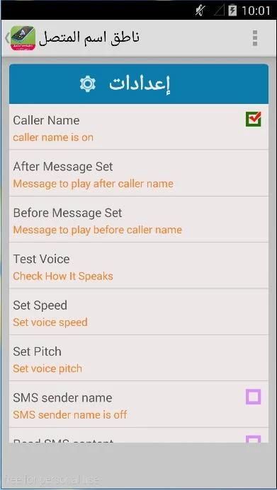 تطبيق ناطق اسم المتصل عند الاتصال يوفر معرفة اسم المتصل وسماع هاتفك ينطق باسم المتصل ، يقوم بنطق اسم المتصل بالعربية او بالفرنسية حسب اختيارك في الإعدادات .