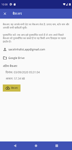 अपनी खरीदारी सूची, उत्पाद नाम और स्टोर का बैकअप लें।