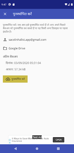 एप्लिकेशन पुनः इंस्टॉल करके या किसी नए डिवाइस पर इंस्टॉल करके अपने बैकअप को पुनर्स्थापित करें।